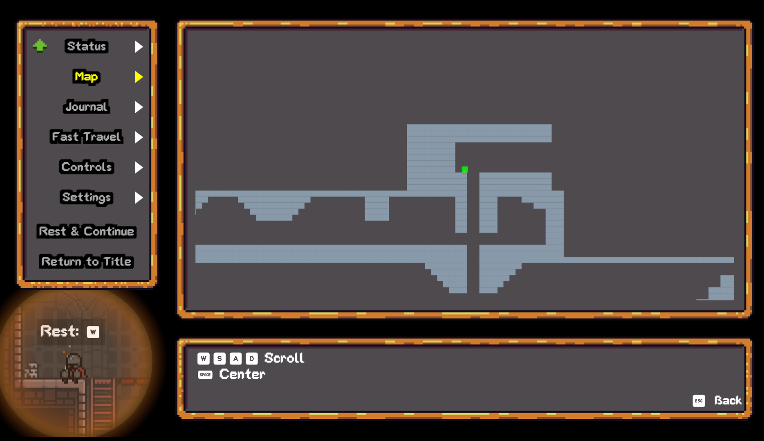 KNOWN BUG: After submission, it was discovered that pressing TAB or the Arrow Keys will cause the game to lose keyboard focuse. If this happens, you will need to refresh the page to continue. The game auto saves each time you use a campfire. Sorry for the inconvenience.